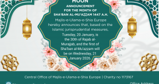 MAJLIS-E-ULAMA-E-SHIA EUROPE Charity number: 1173167 | Imam Baqir (a.s) Centre, 26 Estreham Road, Streatham, London SW16 5PQ, UK |Tel: 01344531398